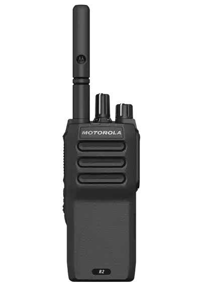 Durable, lightweight and long-lasting, MOTOTRBO R2 proves the right choice for all-day reliability, even in challenging work environments. Use with confidence in dusty factories, wet landscaping and more; and with ease, even while wearing gloves.